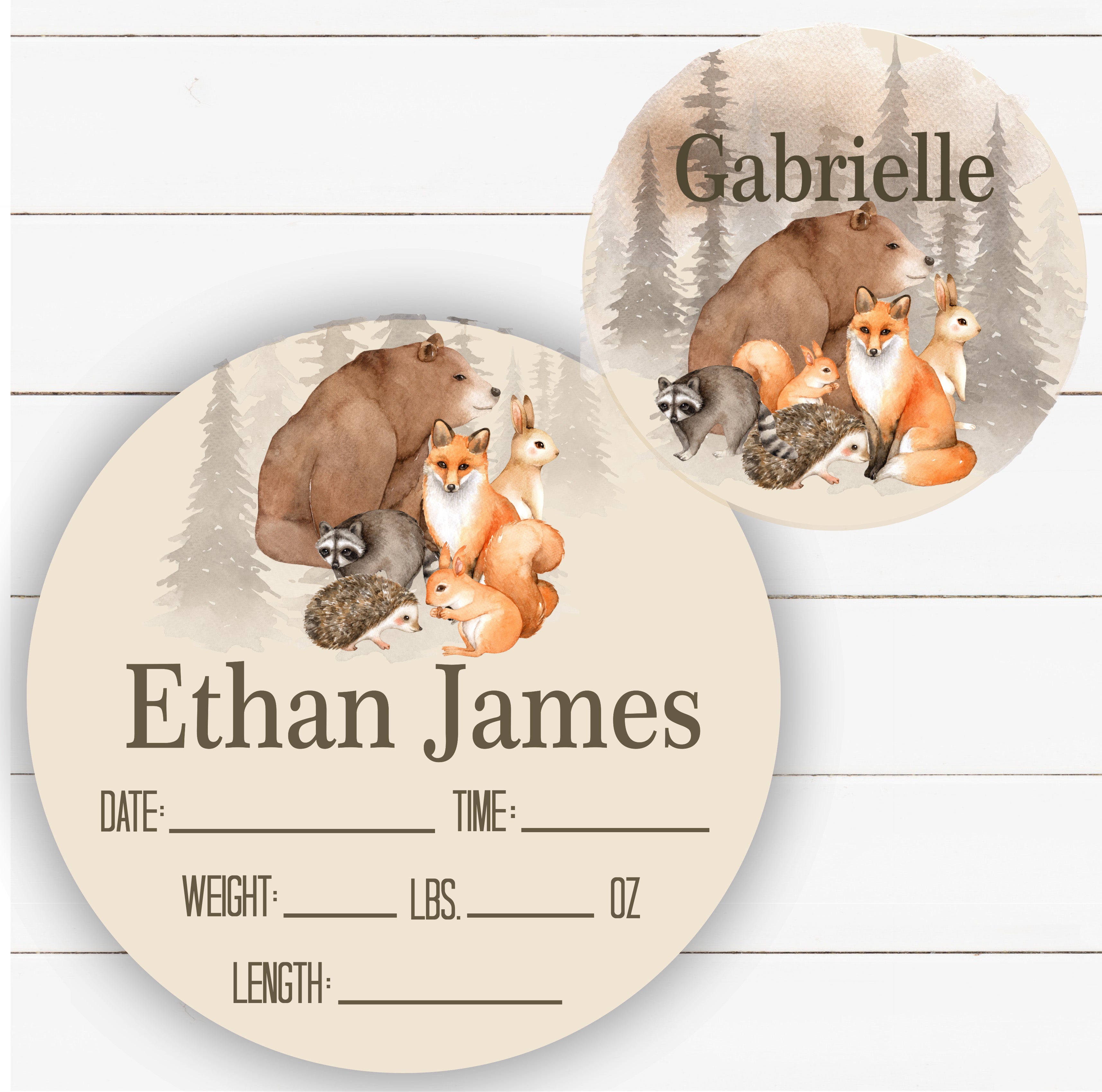 Printed items including growth charts, wall art, door signs, and wall decals.
