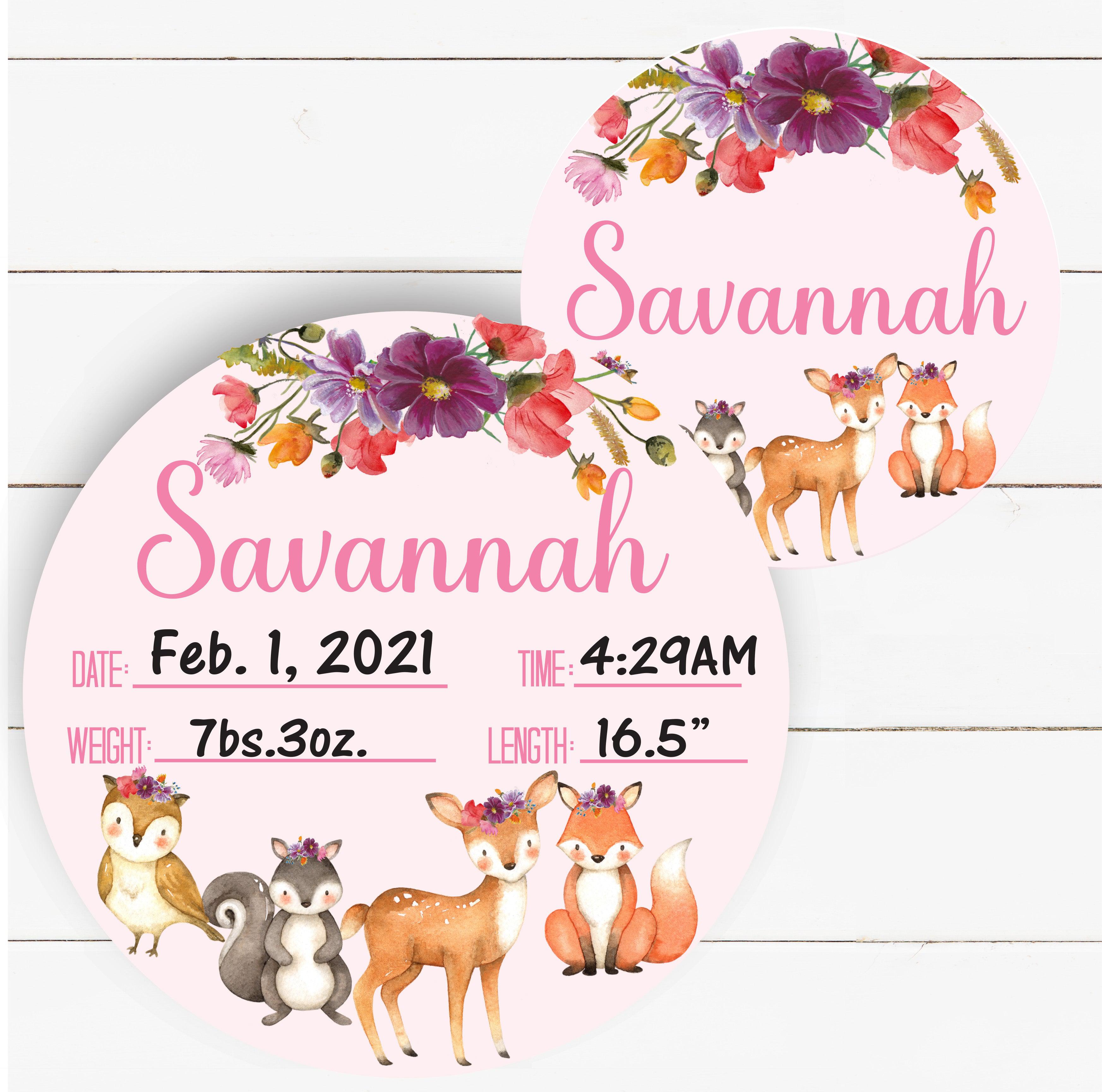 Features of our Floral Woodland Animals Birth Stat Sign - Newborn Photo Prop