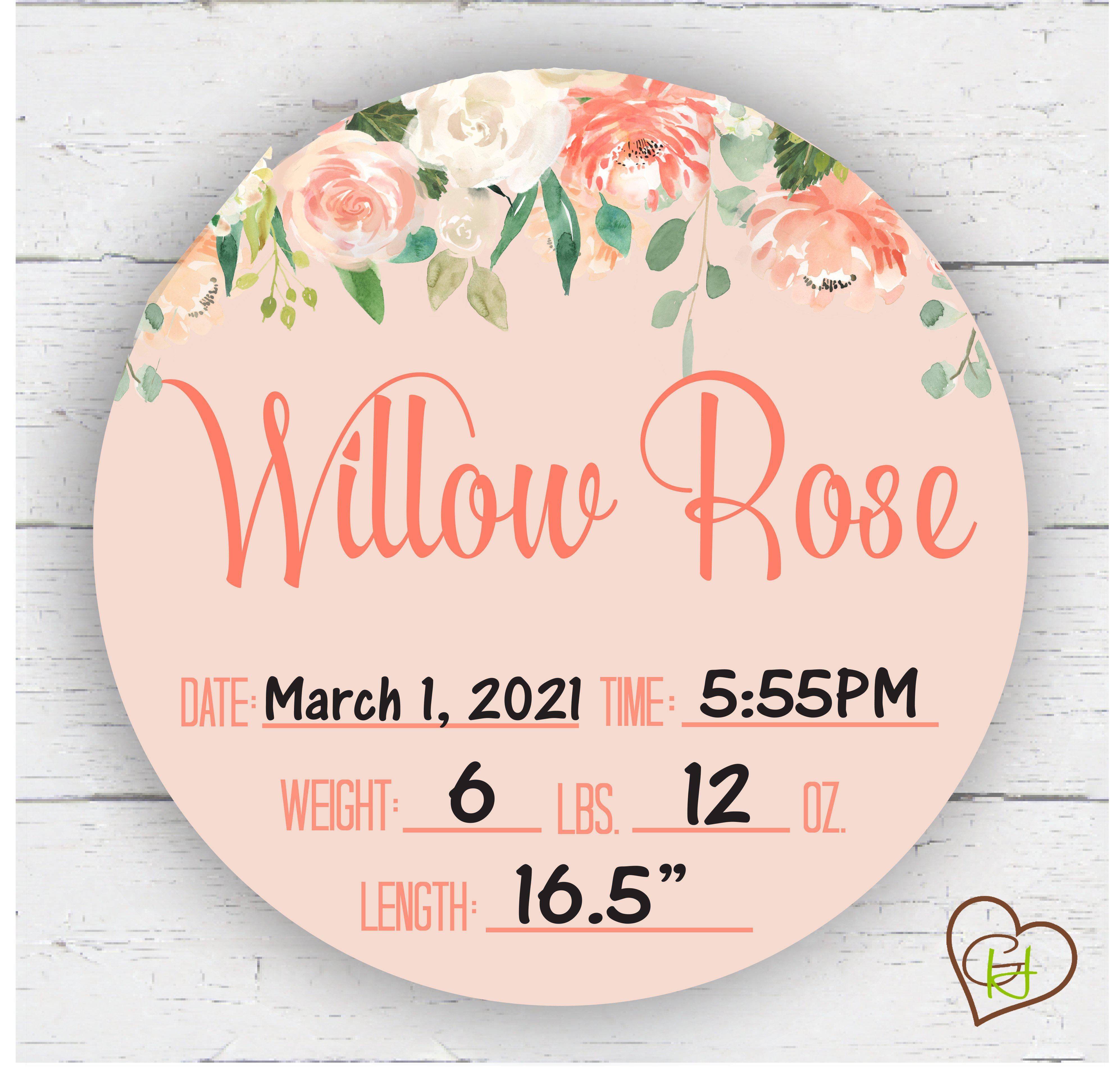This pretty sign is the perfect way to announce your baby's arrival. You can fill in the info, and hang on your hospital door, use it for a fresh 48 photo session, and save as a keepsake that can be added to the nursery décor at home and then to her memory box as she grows up.