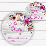 Birth Stat Sign - Lavender Floral on Wood Background - Printed
