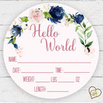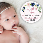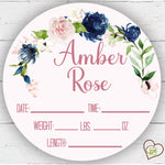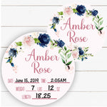 Birth Stat Sign - Navy and Blush Floral - Peronalized
