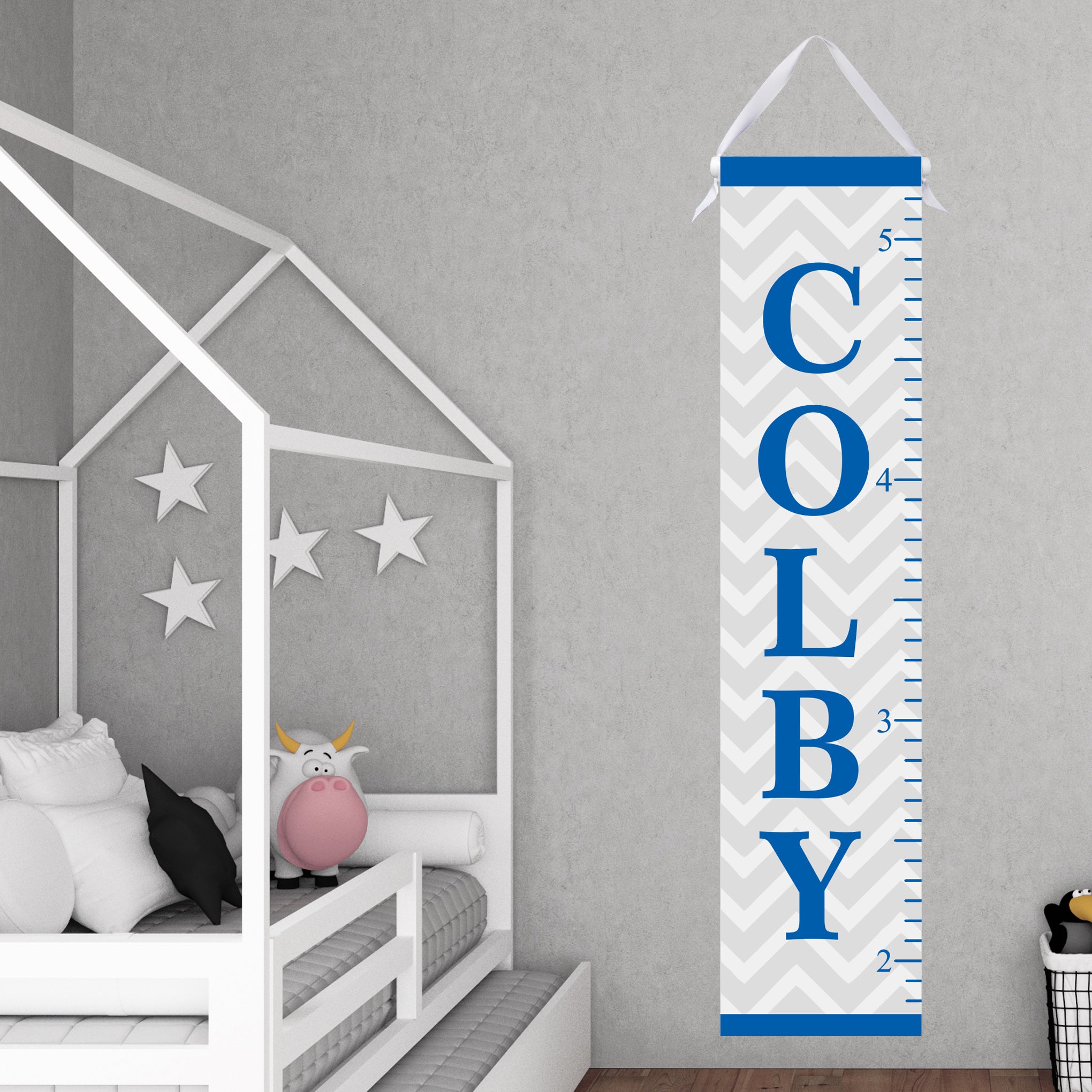 This bold blue and gray chevron growth chart will grow with your little boy and will be a great addition to his nursery, bedroom or playroom. The whole family will love watching and documenting him growth.