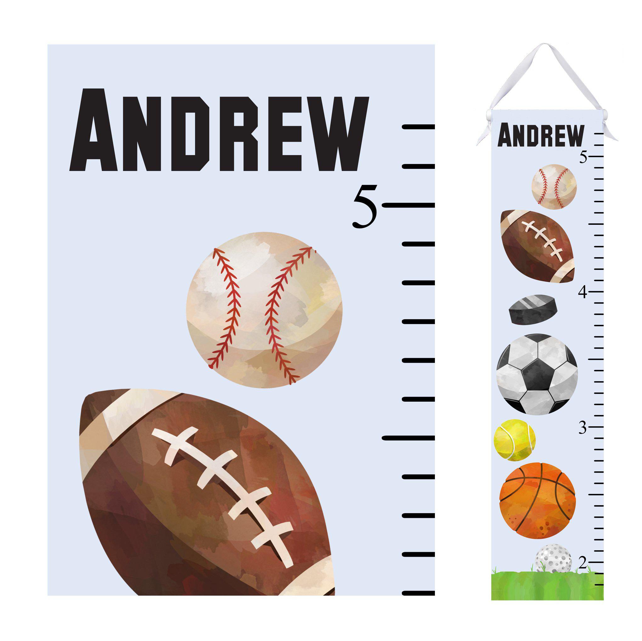 This striking sports growth chart will grow with your little one and will be a great addition to the nursery, bedroom or playroom. The whole family will love watching and documenting their growth.