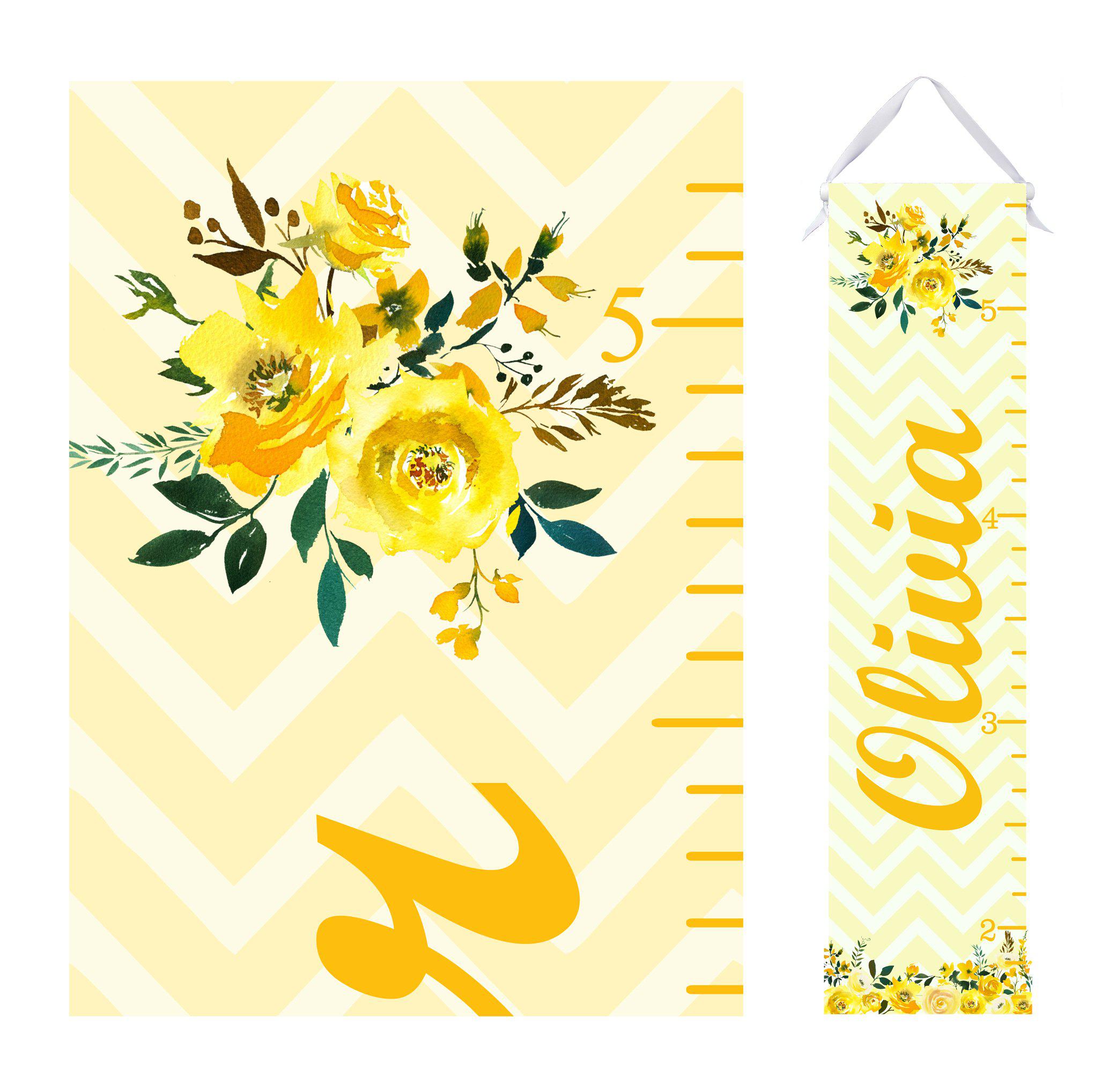 Personalized Growth Chart - Yellow Floral Design
