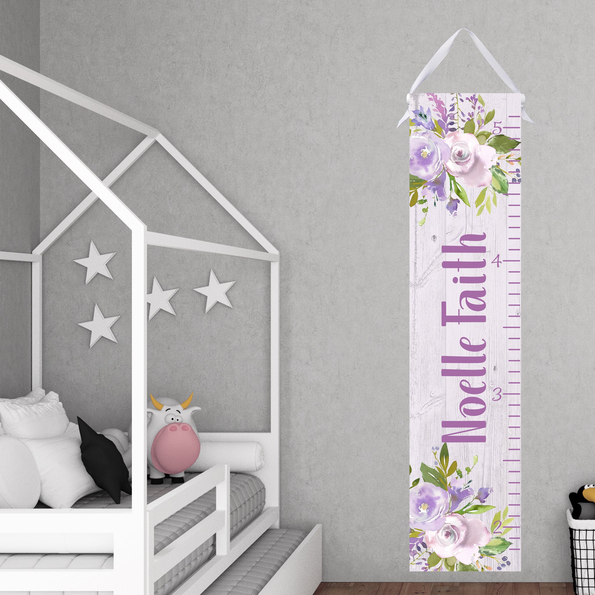 This beautiful lavender floral growth chart will grow with your little girl and will be a great addition to her nursery, bedroom or playroom. The whole family will love watching and documenting her growth.