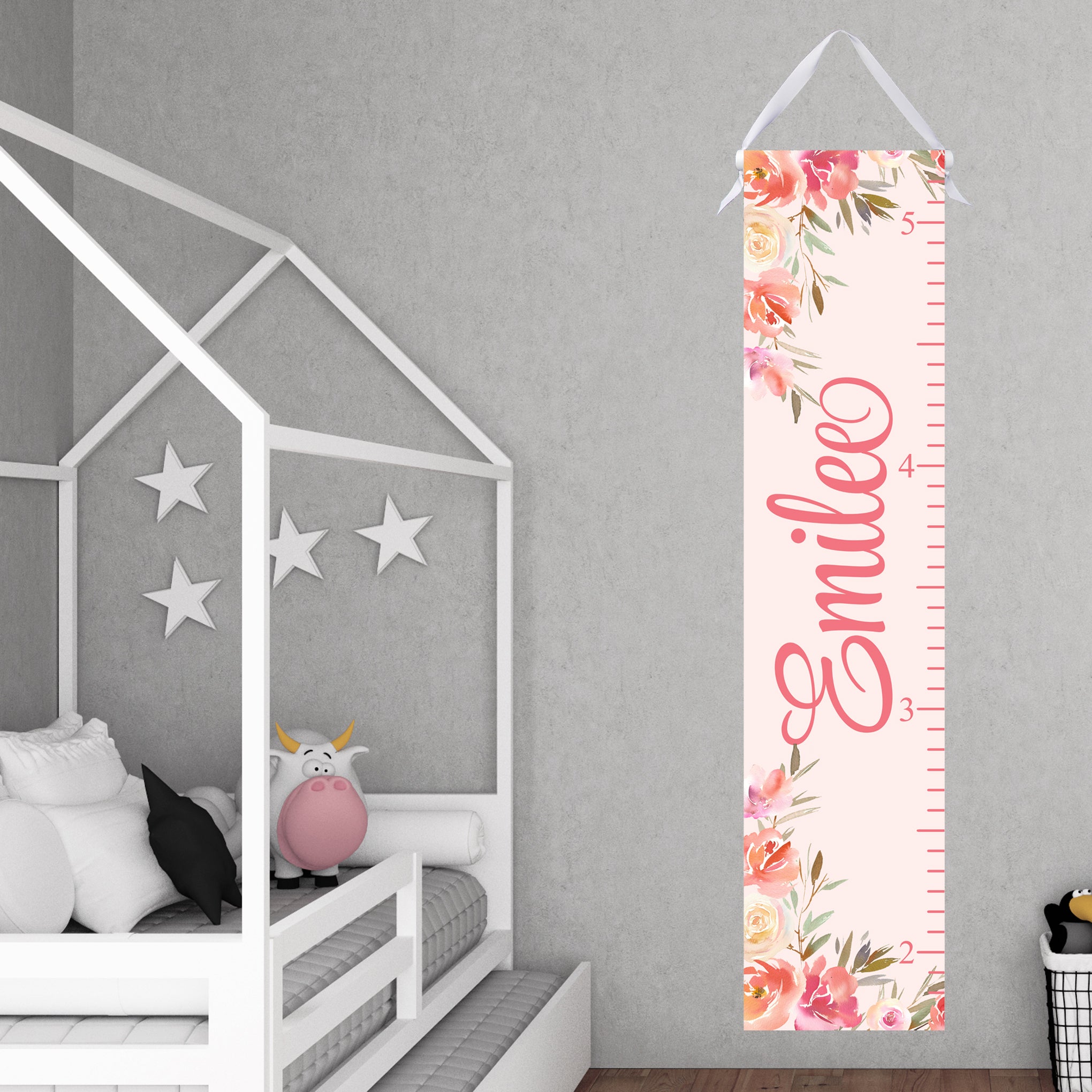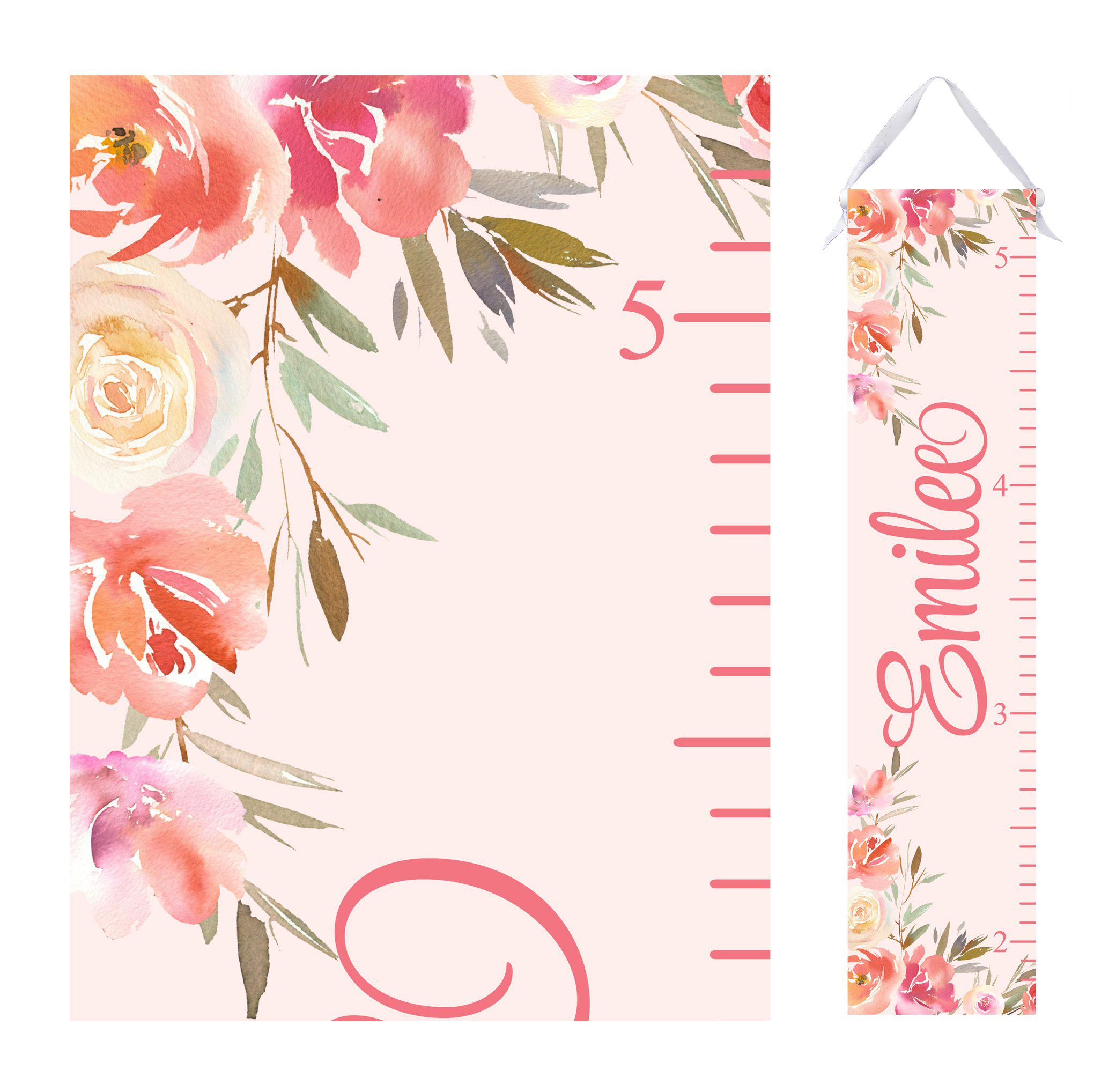 This beautiful blush floral growth chart will grow with your little girl and will be a great addition to her nursery, bedroom or playroom. The whole family will love watching and documenting her growth.