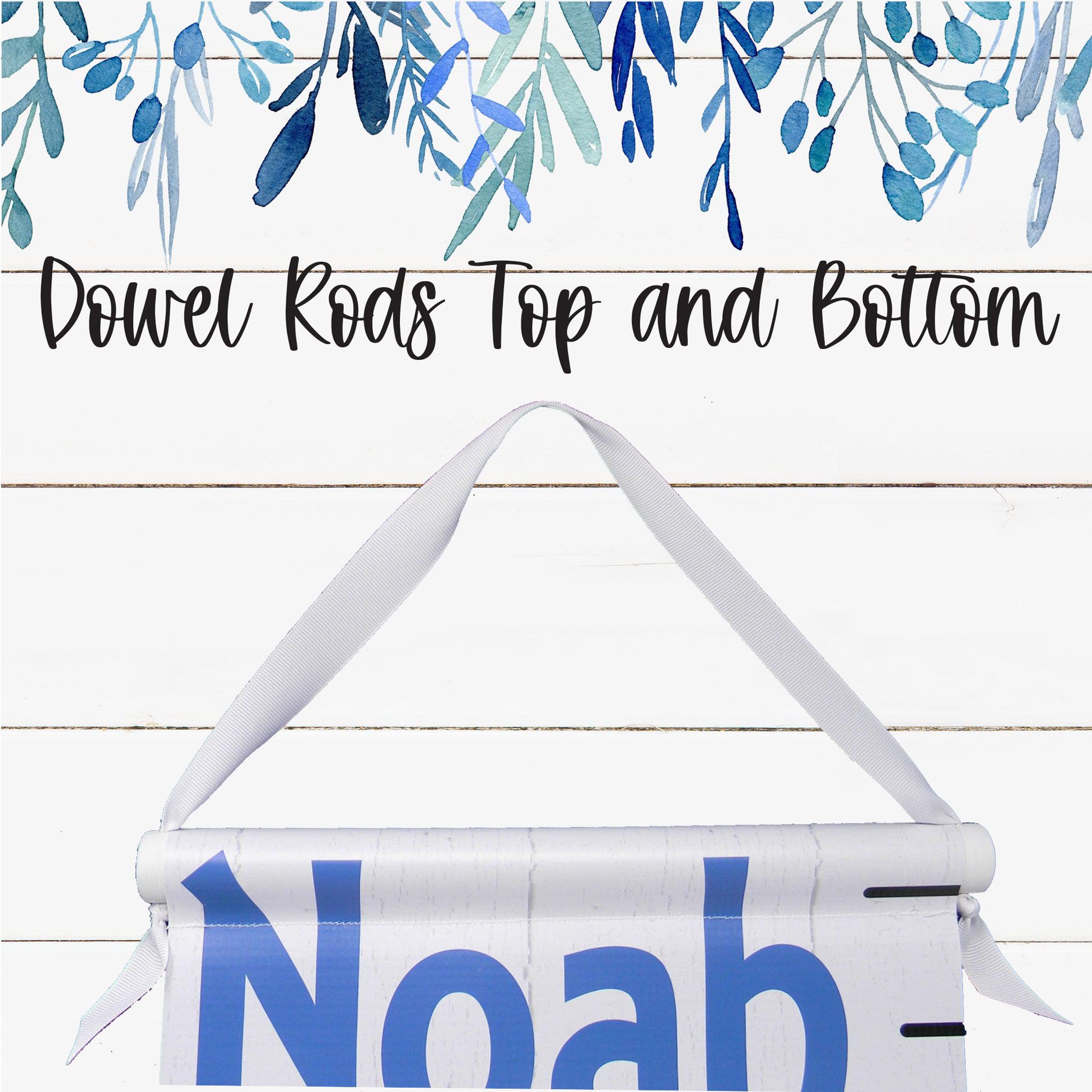 - Dowel rods are included at top and bottom. Top rod has a grosgrain ribbon for easy hanging.