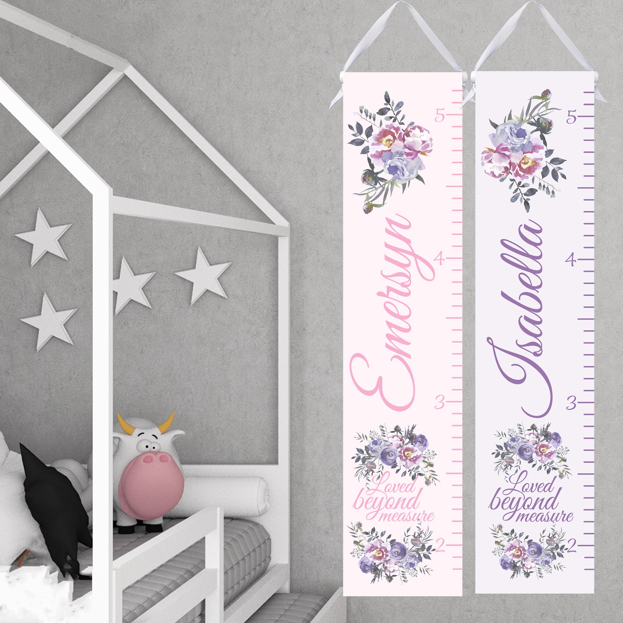 This beautiful lavender or pink floral growth chart will grow with your little girl and will be a great addition to her nursery, bedroom or playroom. The whole family will love watching and documenting her growth.