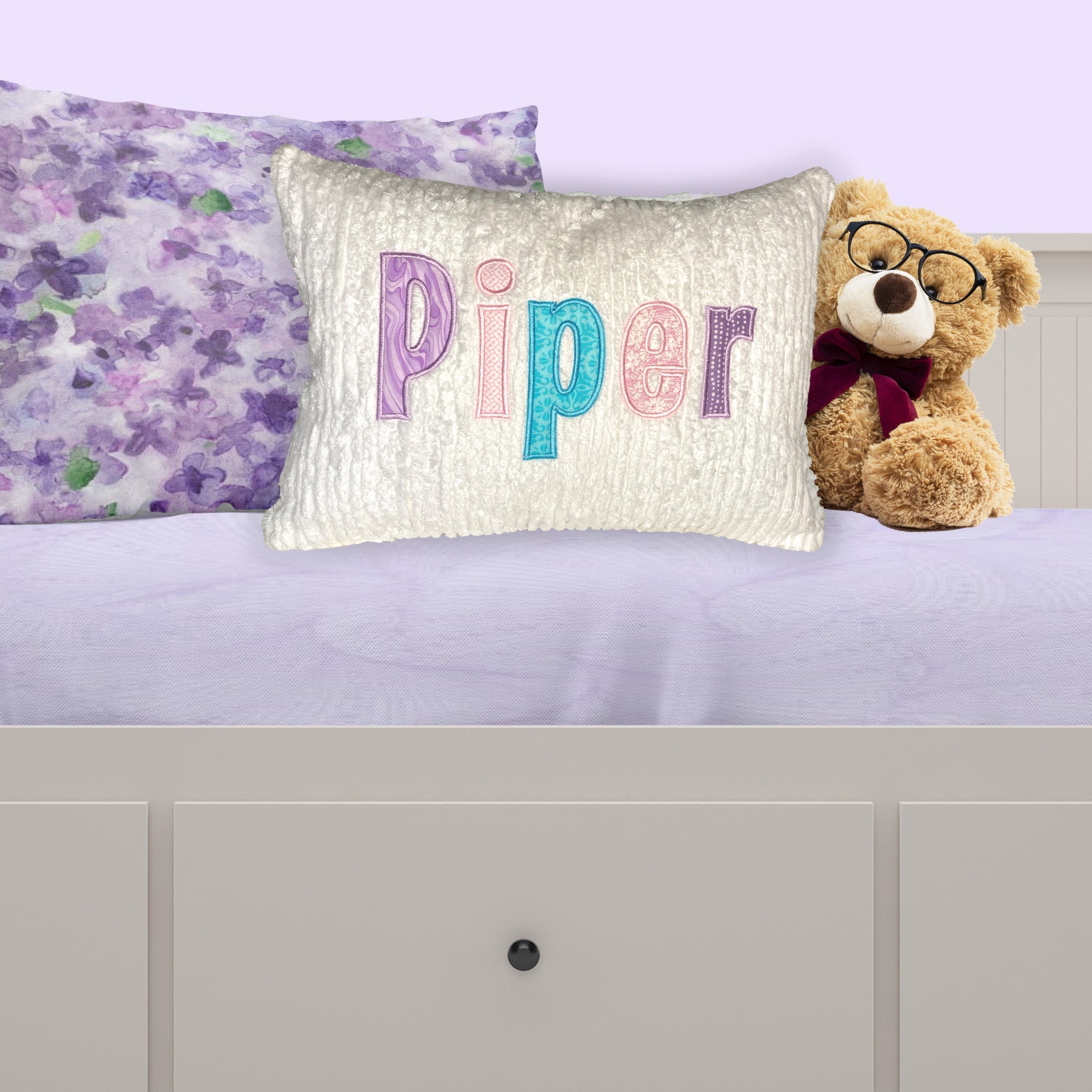 Personalized Name Pillow - Chenille With Pastel Appliques