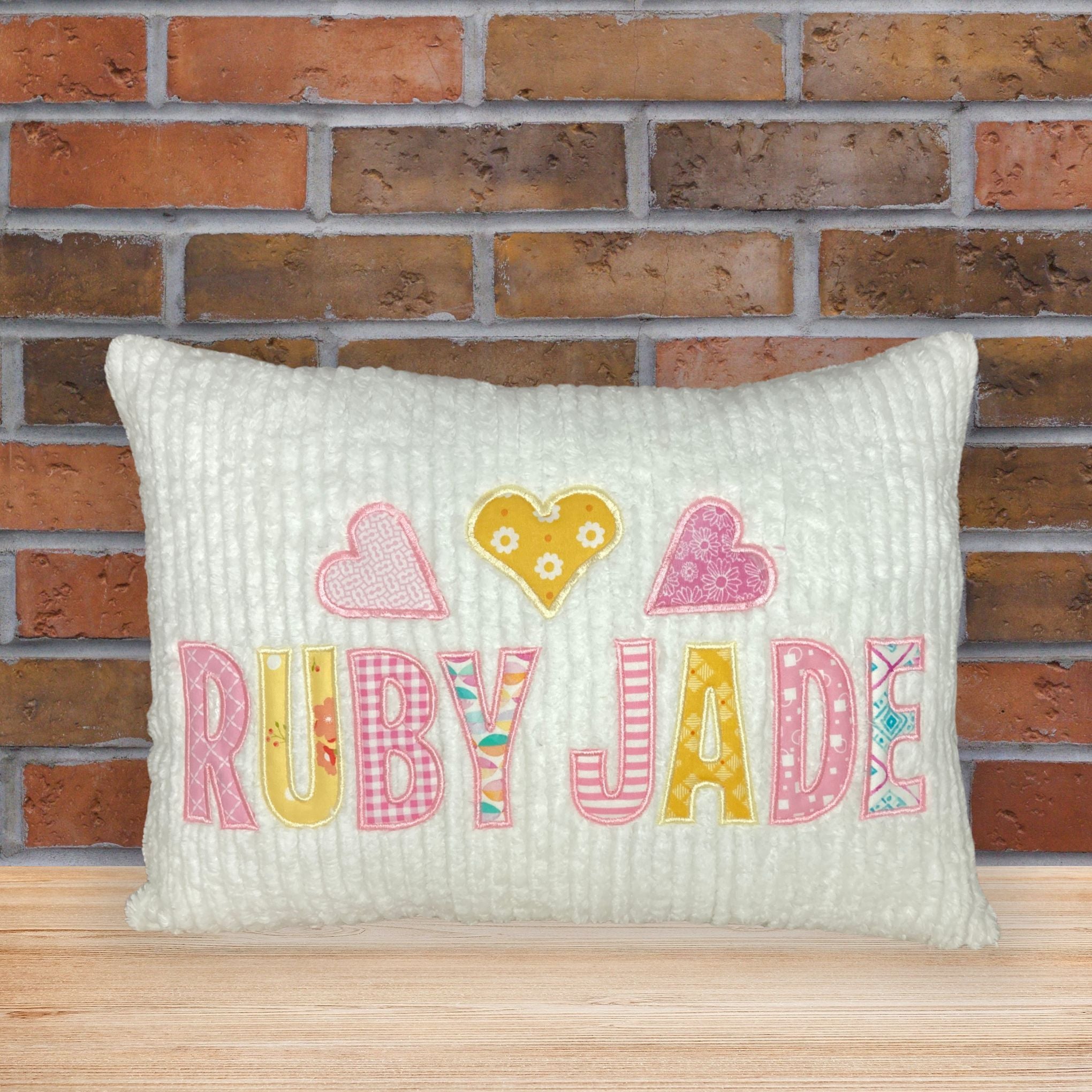 Personalized Pillow for Girls - Pink, Yellow, Teal, Turquoise Applique
