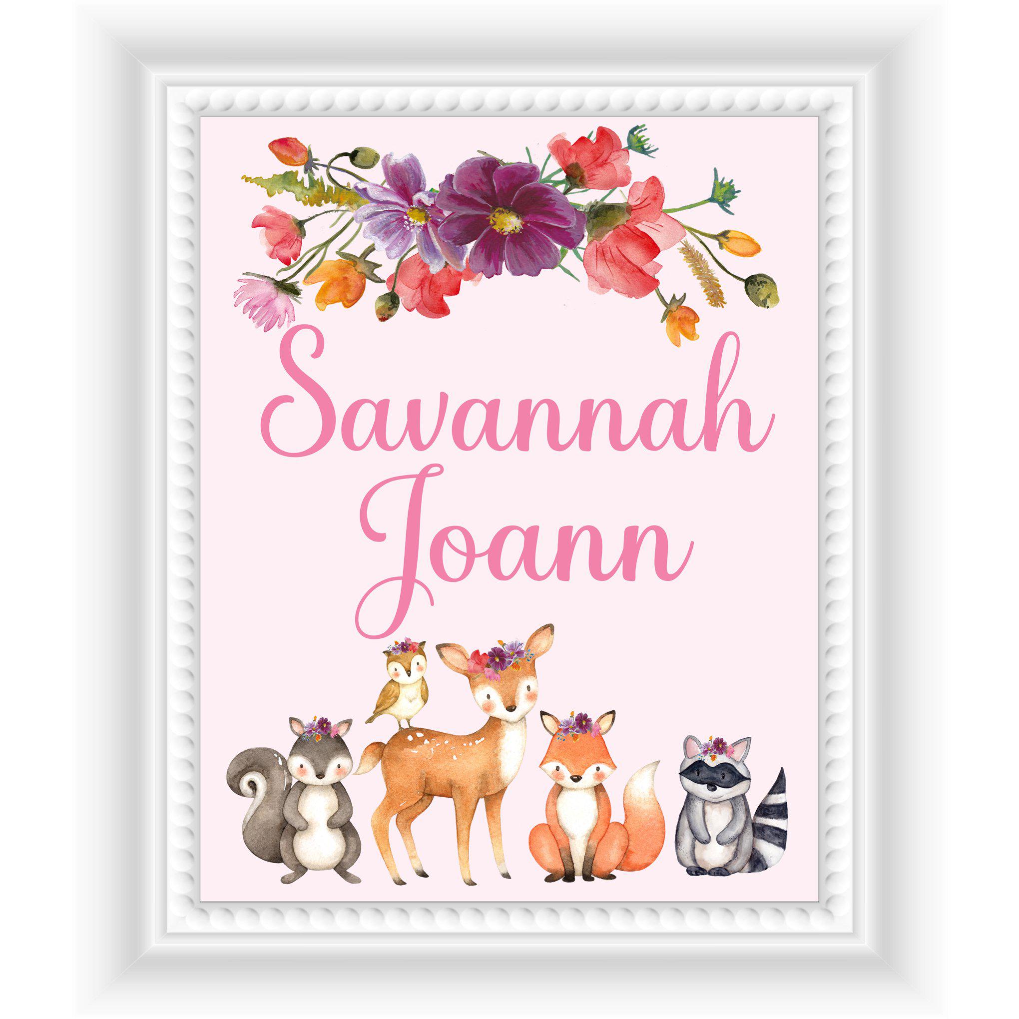 Your choice of digital or printed - Floral Woodland Animals Personalized Wall Art. If you choose the digital option, you will not receive a physical product.