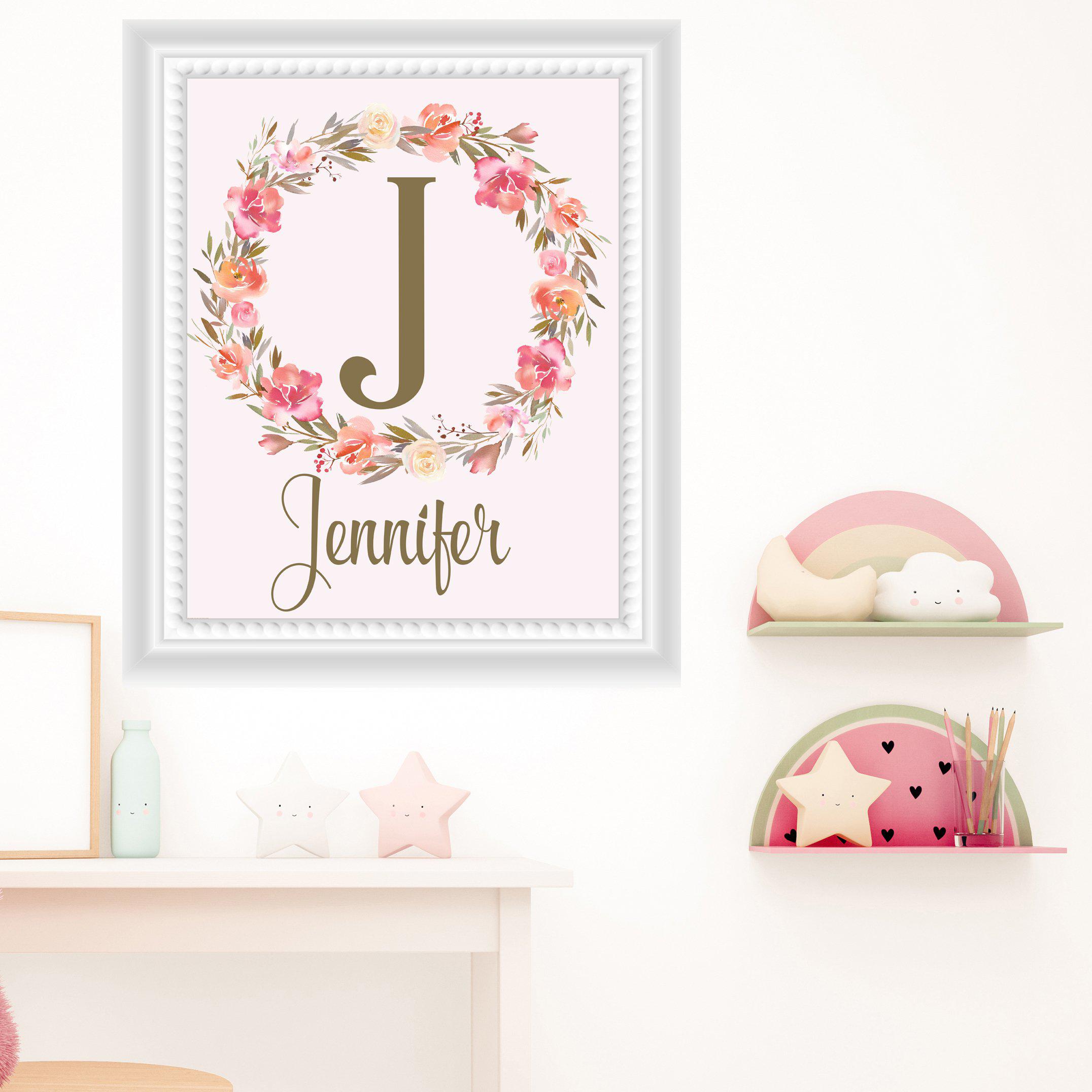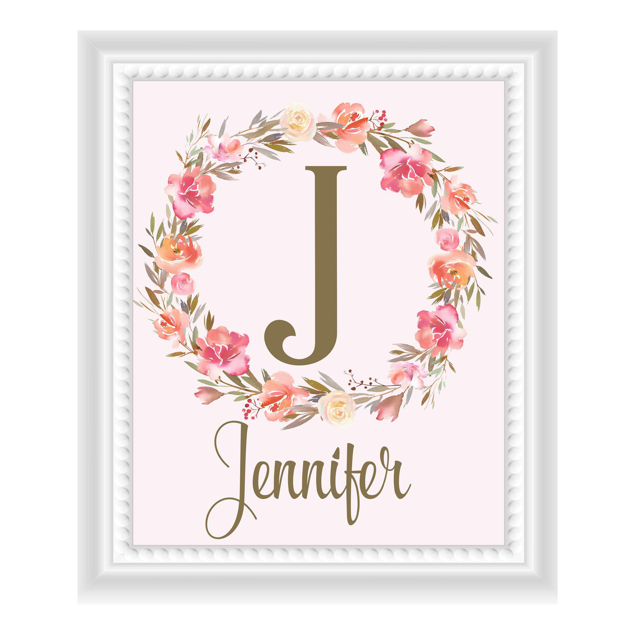 Your choice of digital or printed - Pink Blush Floral Initial and Name Personalized Wall Art. If you choose the digital option, you will not receive a physical product.