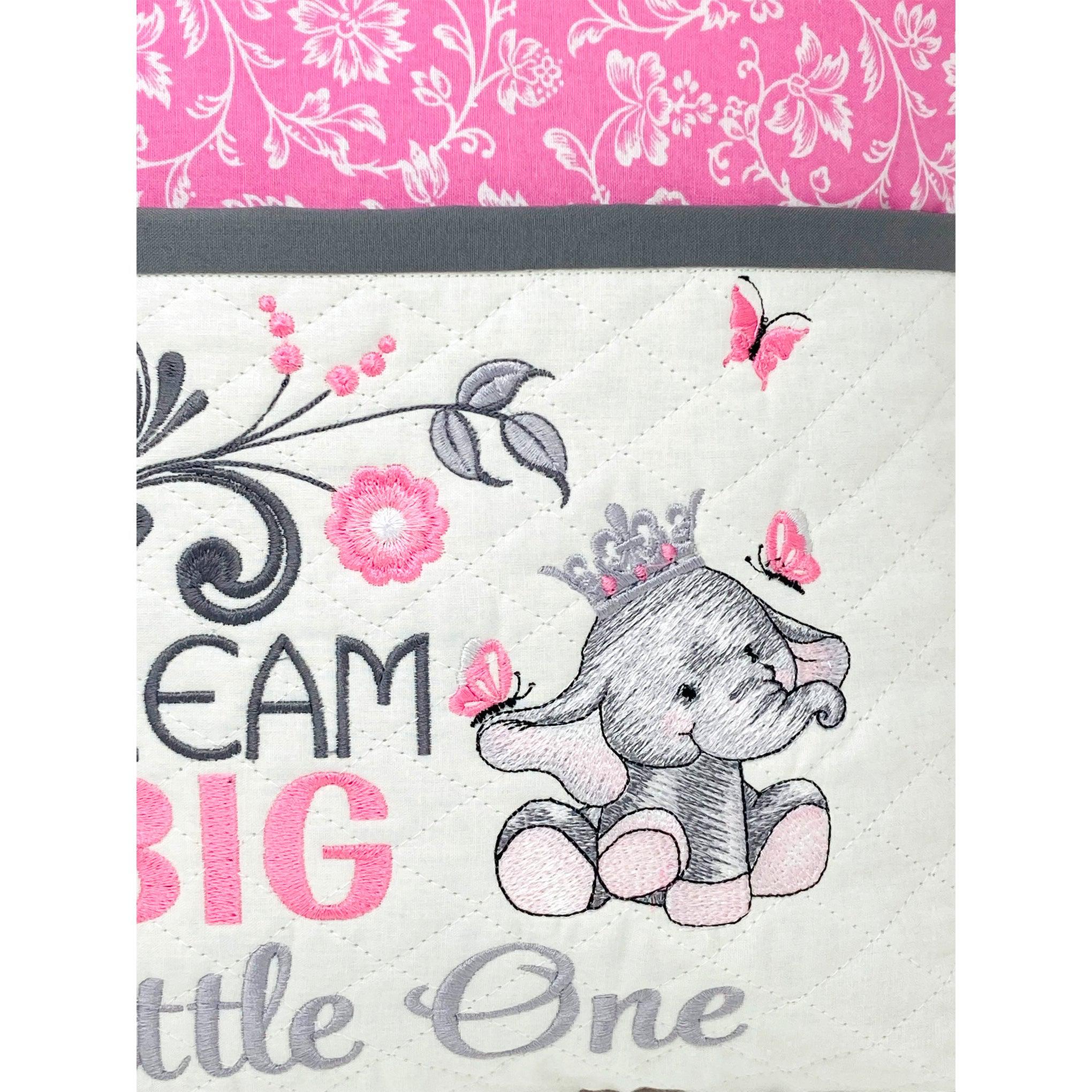Elephant reading pillow with pocket - grey and pink theme - Dream Big Little One