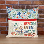 Encourage the young readers in your life with a special reading pillow. The pretty ocean animals fabric and embroidered design is a great choice for a growing child who loves to read. The front pocket is perfect for holding a book, e-reader, etc.