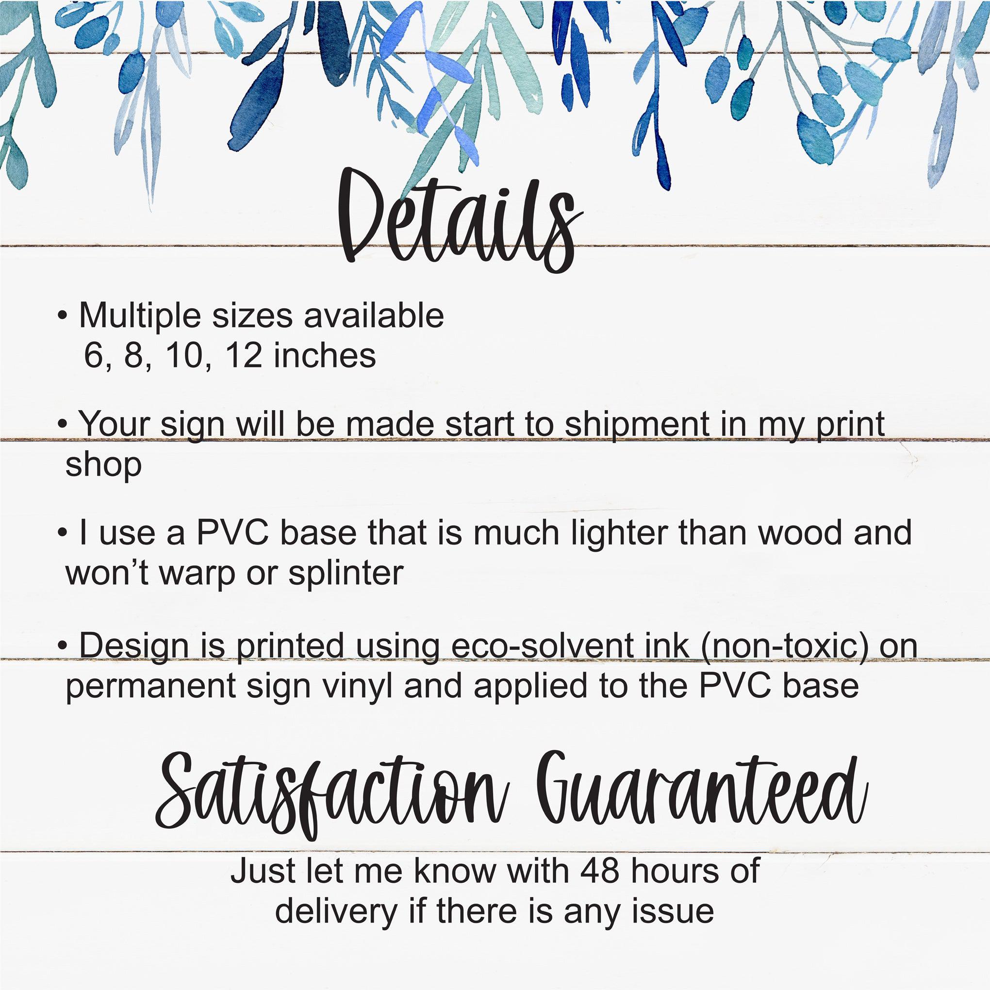 - Available in multiple sizes - 6, 8, 10 & 12 inches round. Hanging materials are not supplied for safety reasons. You will be able to easily hang your sign using double stick tape or command type strips.